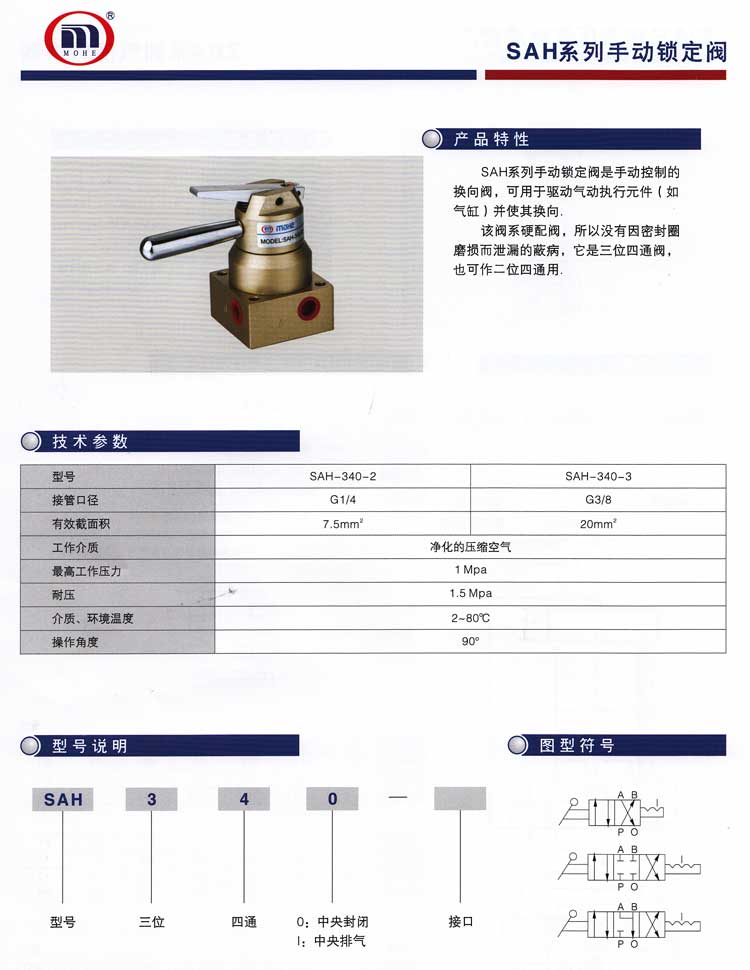 Product Name:SAH-340-3, manual valve, MOHE locking valve, MOHE CYLINDE, SAH series manual locking valve |