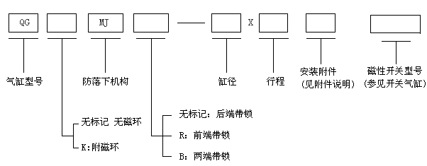 QGMJ-100×300  防落下氣缸,缸徑為100毫米,行程為300毫米。