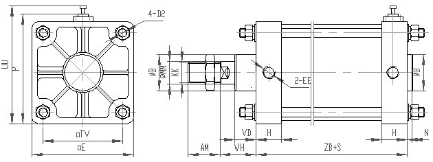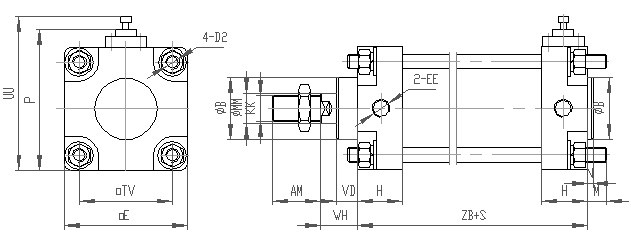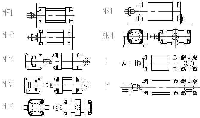 MF1 前端矩形法蘭 MT4 中間軸銷 Y Y型活塞桿連接件