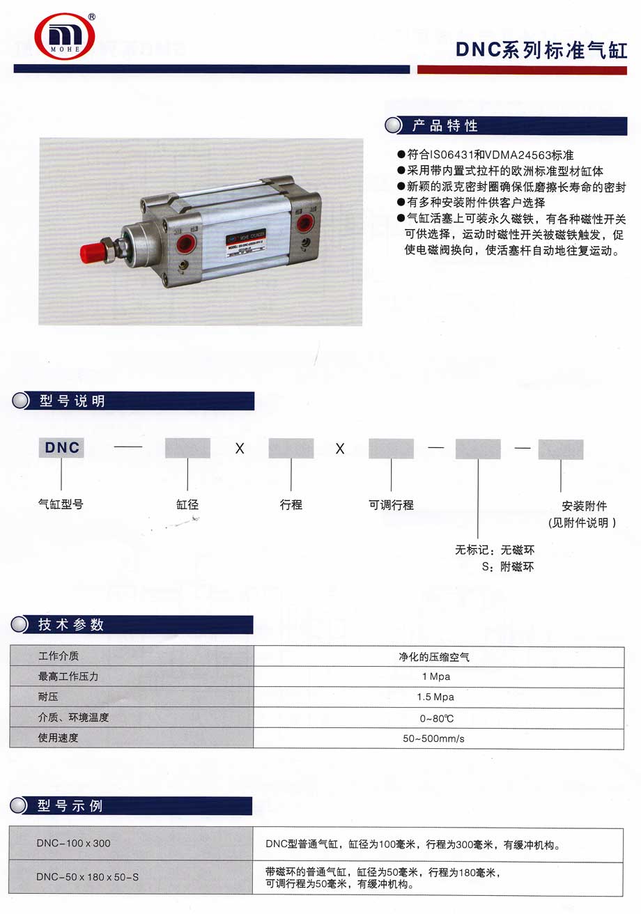 名稱:MOHE CYLINDER,MOHE氣缸,DNC系列標(biāo)準(zhǔn)氣缸 |