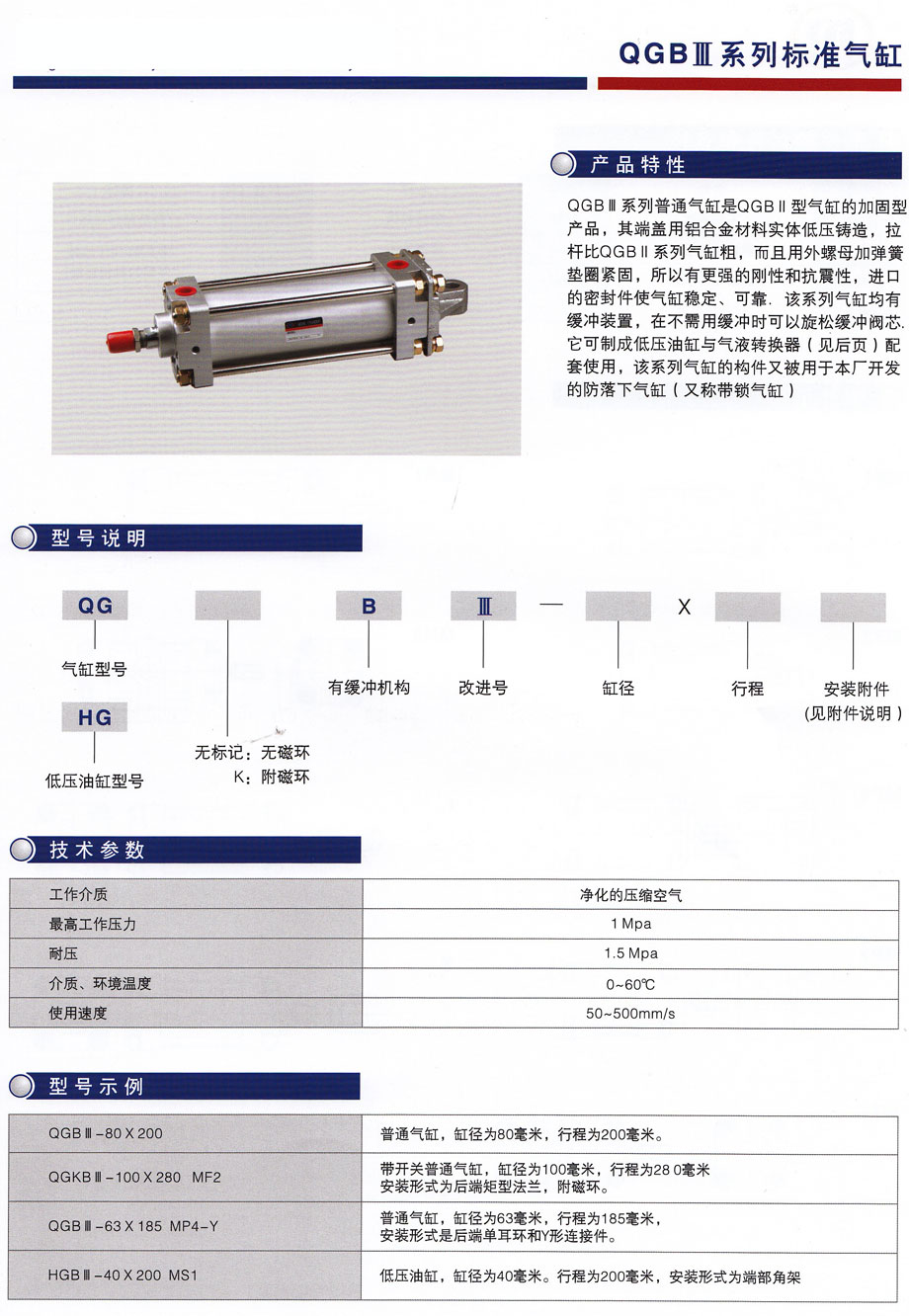 QGBⅢ/QGBIII系列標(biāo)準(zhǔn)氣缸